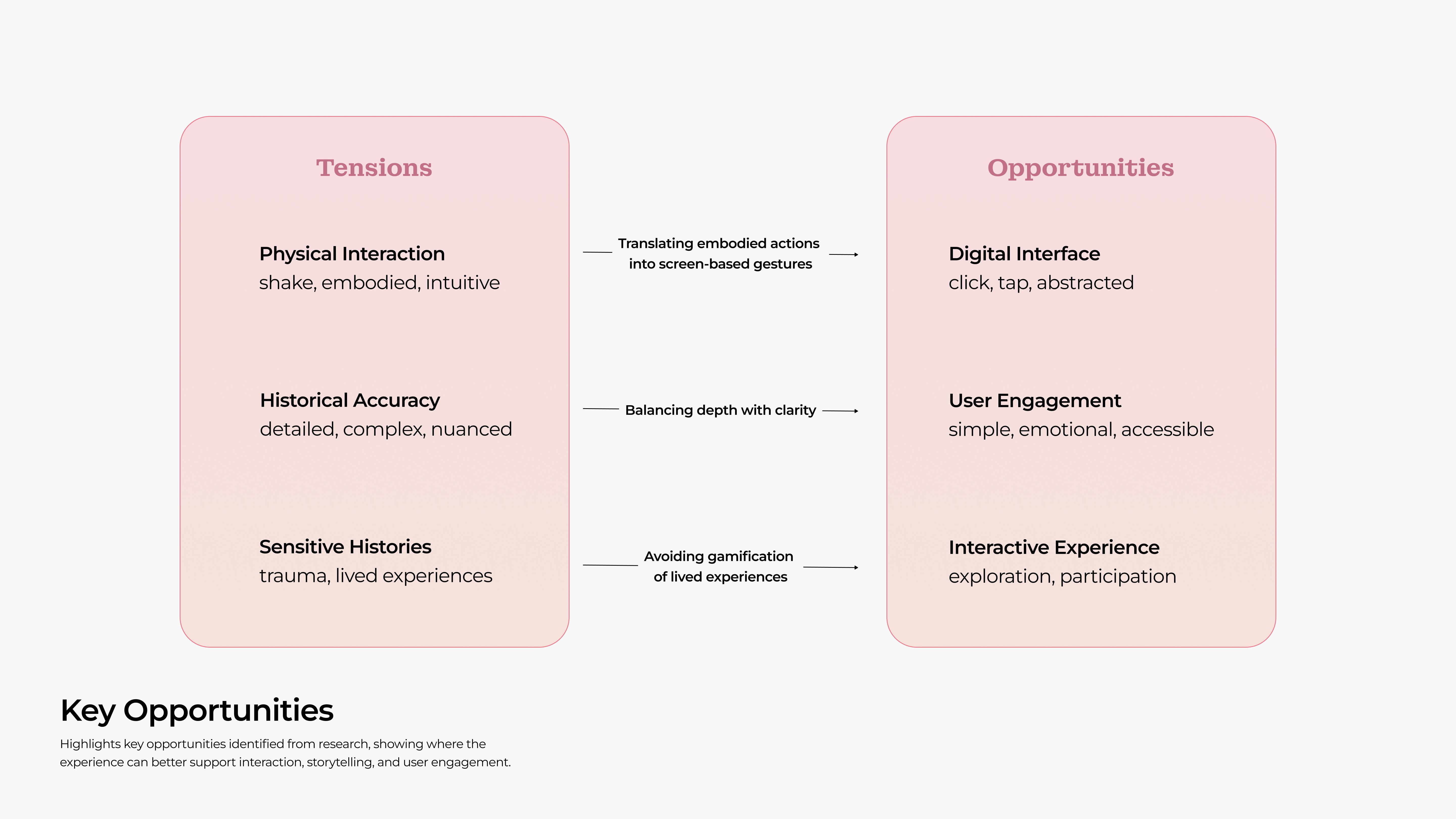 Map out the possible tension and opportunities shaping a user friendly expereince.